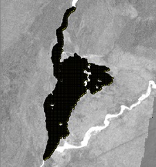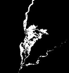 23. Using the NDVI results from 1984 (the first Landsat 5 scene); the vegetation indices with values of more than 0.1 were extracted and converted into an integer value of 1. Everything else was given a value of 0. This resulting raster was converted to a vector shapefile and everything but the two areas of interest were selected and deleted.