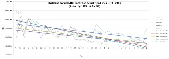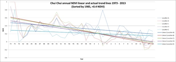 27. The five sites with the highest NDVI value based on the 1984 scene were extracted and graphed