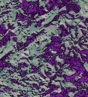 An agricultural landscape in Rio Claro Province, Brazil, with fine scale patterns of tree cover. The image on the right is the original Google Earth image (©2015 Google), while the image on the left displays the mapped boundaries of agricultural tree cover, automatically classified using the new method