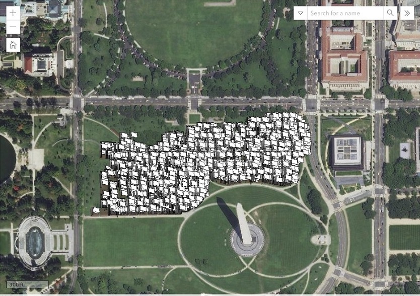 GISCorps was asked to provide qualified volunteers to validate digital crowdsourced submissions via Survey 123 using Esri’s Crowdsource Manager application. Project lead Shoreh Elhami selected Quanxin (Jenny) Cheng, Charles Feng, and Songmei Li for the task. Later on, two additional volunteers joined the effort; Mackenzie Fox and Kenneth Hornfeldt. Once approved by the volunteers, over 8,000 form submissions were transferred to flags by another group of In America: Remember volunteers in Washington, D.C., and planted on the National Mall as part of the COVID-19 memorial art installation.