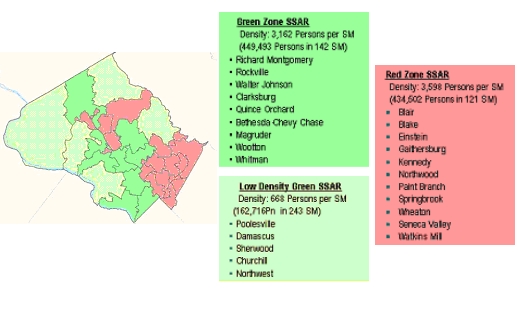 Montgomery County Public Schools (MCPS) labeled elementary schools with large populations of students w/“unique needs” and poor performance (economic & educational challenges) as “Red Zone” beginning in 1999 and those without as “Green Zone”.