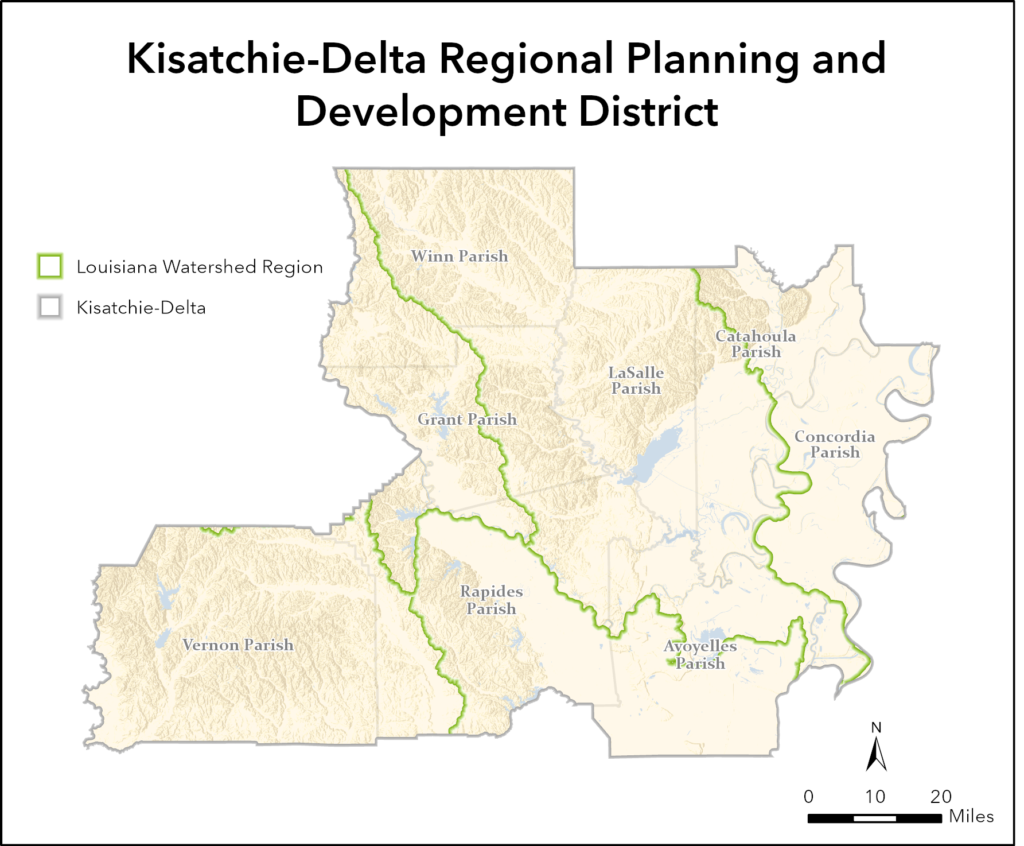 The Kisatchie-Delta Regional Planning and Development District is located in central Louisiana and is comprised of eight parishes. They are chartered by the US EDA as an Economic Development District. The Kisatchie-Delta Regional Planning and Development District encompasses 55 governments, and two federally recognized indigenous tribes. The district assists local government assess public sector development, with an emphasis on assisting community economic development and small businesses within the region.