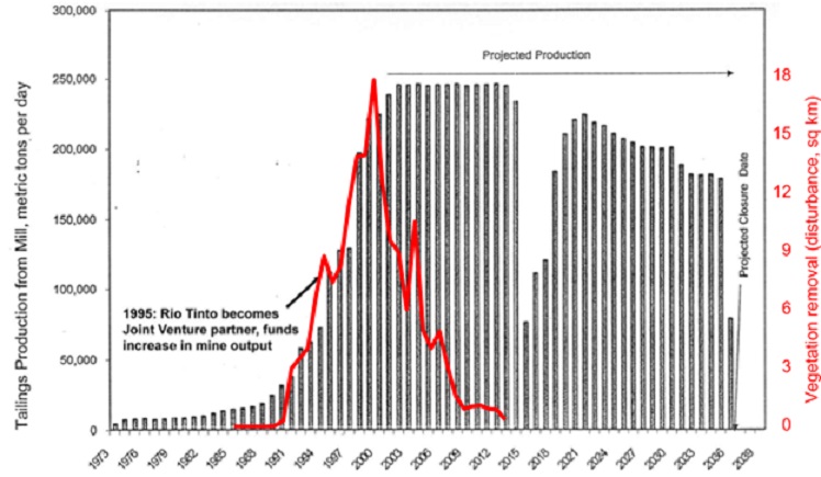 • It further makes clear that as the mining activities increased over the years so did the tailing production and environmental disturbance as a consequence.