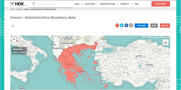 - Common Operational Data (CODs) for three countries was made publically available on HDX – see this blog post referring to the first two datasets that were published. More recently, datasets for Turkey have been published including Administrative Boundaries, Roads, Rivers, Settlementsand Camps