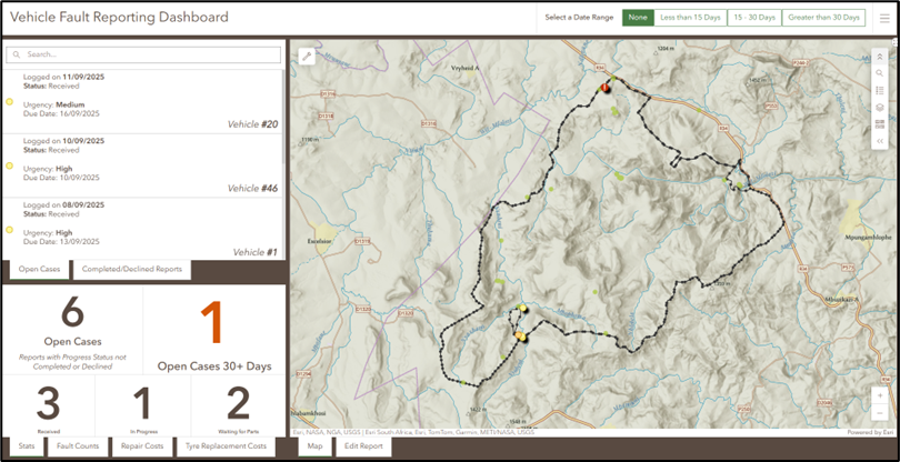 - The vehicle fault reporting workflow was modernized by integrating Survey123 forms with Microsoft Power Automate. This setup now sends automatic email notifications to mechanics and submitters when a fault is reported. A new dashboard visualizes open cases, repair backlogs, and costs, improving transparency and efficiency.