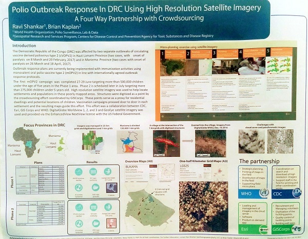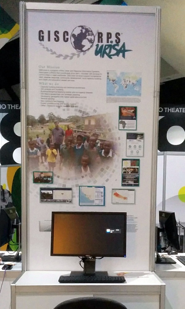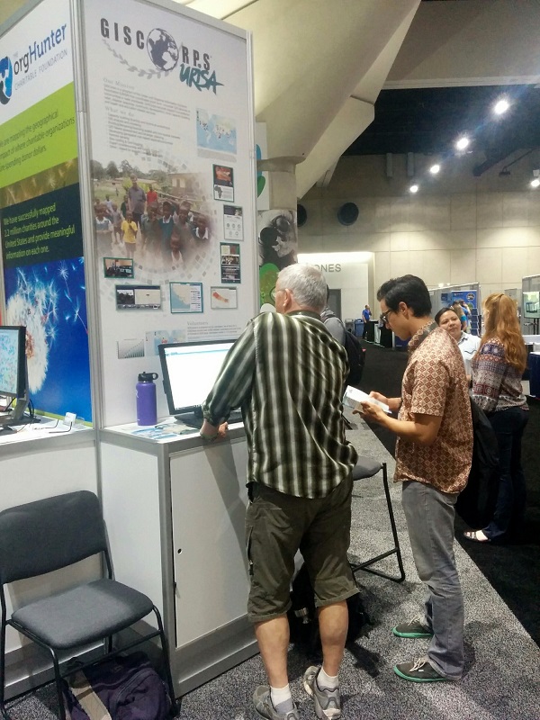 The 2017 Esri User Conference was held in San Diego from July 10-14. This year was the second year that along with tens of other NGOs GISCorps participated in the Sustainable World Community (SWC) Exhibit. Our booth was visited by many volunteers and friends and was coordinated by David Litke, GISCorps Core Committee member, assisted by German Whitley, also of the Core Committee as well as Curtis Day and many more of our volunteers. Other activities included: