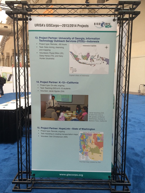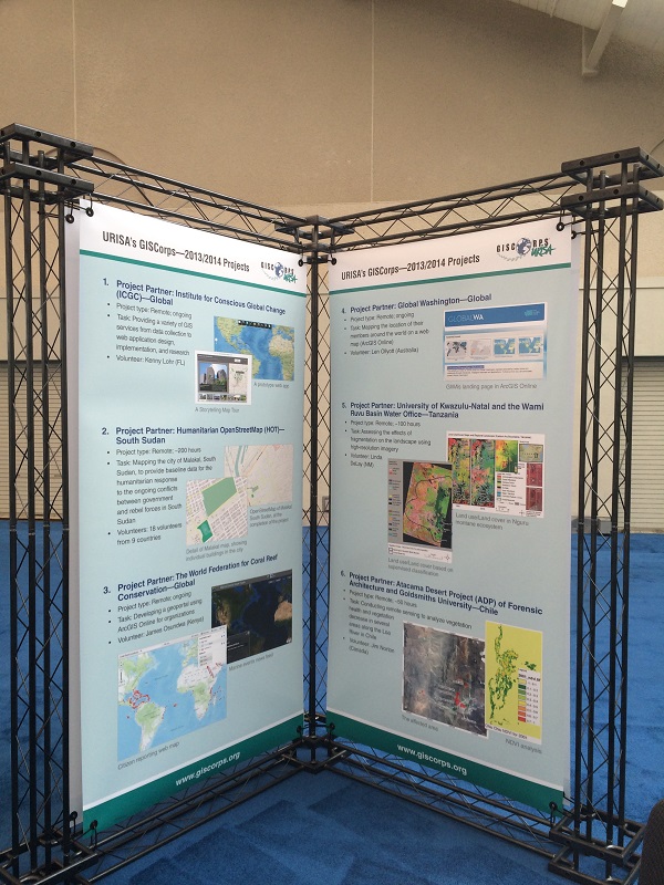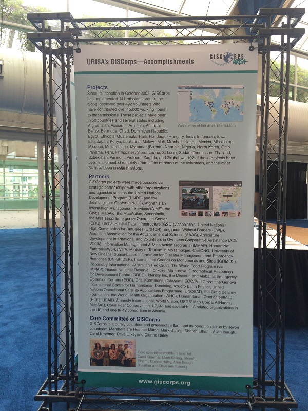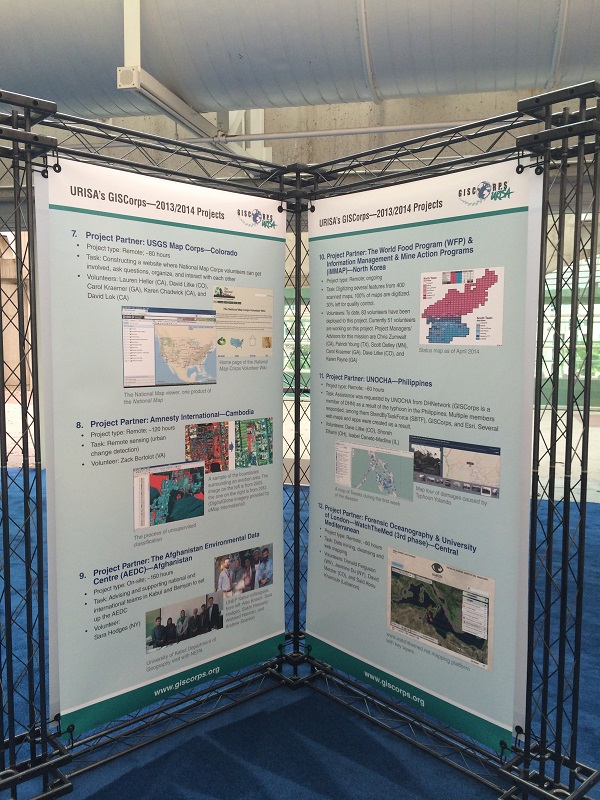 The 2014 ESRI User Conference was held in San Diego from July 14-18. As in the past several years, GISCorps had a special exhibit in the Map Gallery where 100’s of existing and new volunteers stopped by and visited with the Core Committee (CC) members and other volunteers. The CC members and volunteers also presented at the annual session on Thursday. The following photos were taken during the week.